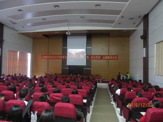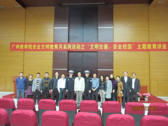 活动获得了广州市公安局交警支队的大力支持,并派支队文明宣讲成员张巧警官主讲;学校保卫处胡成业处长就进一步做好广州商学院校园文明安全工作进行了动员部署;学生会主席代表全体同学宣读“文明交通、安全校园”倡议书,最后,学校党委吕泉荣书记就做好文明校园建设的重要性和紧迫性做了重要指示。