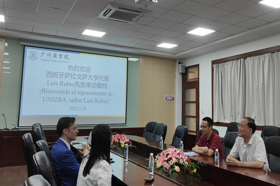 徐超对Luis Rubio的专程来访表示欢迎,并介绍了广州商学院的发展历程、外国语学院办学情况、国际教育路径探索以及西班牙语专业建设等基本情况。Luis Rubio为了让我院学生更充分地了解西班牙语留学和萨拉戈萨大学的情况,介绍了西班牙萨拉戈萨大学的学科建设、校园环境和专业特色等基本情况。他指出,萨拉戈萨大学力求成为一所优质大学以服务西班牙阿拉贡大区的进步,并以其调研教学品质成为全国乃至全世界公认的重点大学。Luis Rubio希望以本次访问交流为起点,在学生层面、教师层面和科研层面与我校各个学科、各个专业展开广泛的合作。双方就拟合作开展的“夏令营”、“2+2”、“3+1”本科生项目以及硕博士研究生项目等进行了热烈的讨论,取得了丰硕的成果。