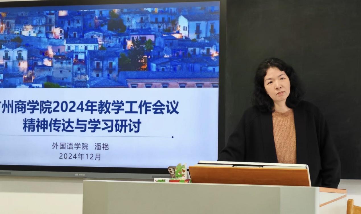 12月19日,外国语学院德法系围绕“广州商学院 2024 年教学工作会议精神传达与学习研讨”主题,成功举办了一场教学分享会。德法系全体教师积极参与,会议由专业负责人潘艳博士主持,旨在深入贯彻学校教学工作会议精神,推动德语专业教学高质量发展。